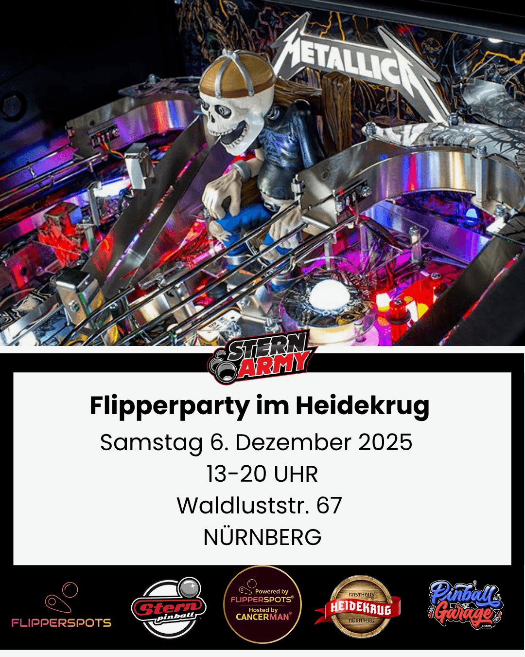 Erlebe echtes Flipper-Feeling in Nürnberg! Im traditionsreichen Gasthaus Heidekrug erwarten dich vier erstklassige Flipper von Stern Pinball: